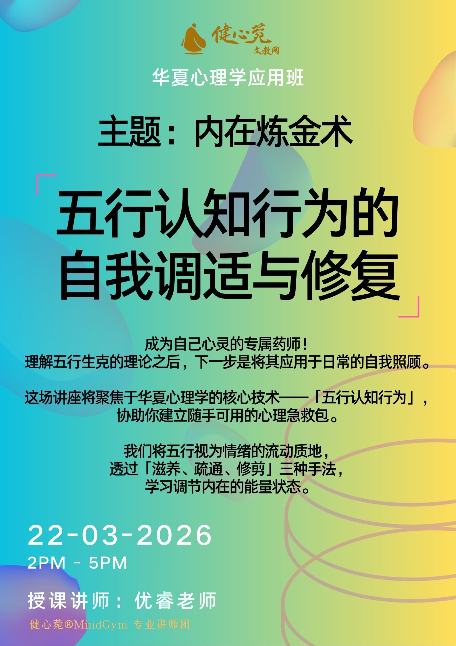 这场讲座将聚焦于华夏心理学的核心技术——「五行认知行为」,